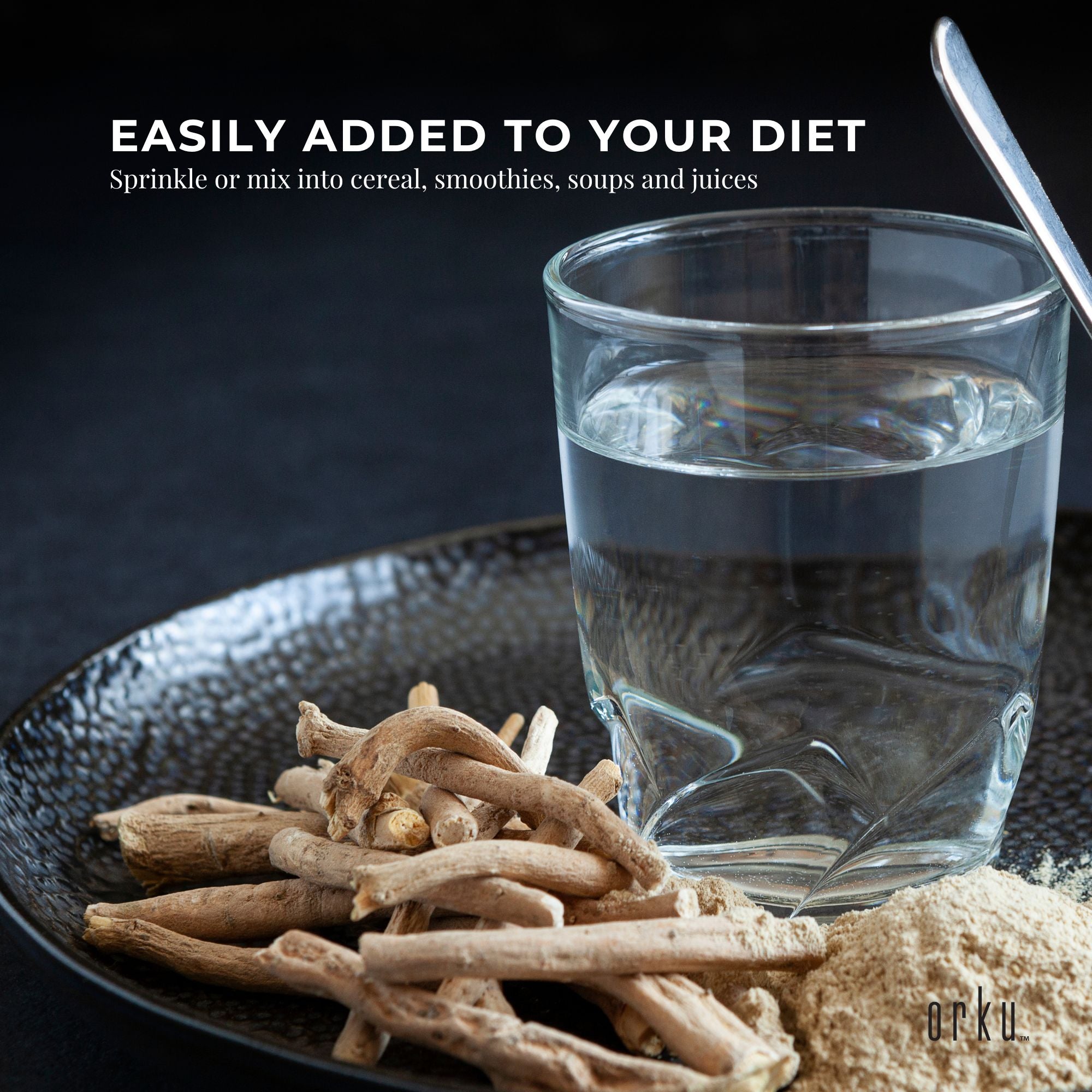 What sets our Ashwagandha apart is its exceptional quality and versatility. With its rich aroma and potential health benefits, it seamlessly enhances your favorite dishes—be it cereals, smoothies, or soups—transforming them into nutrient-packed superfoods.