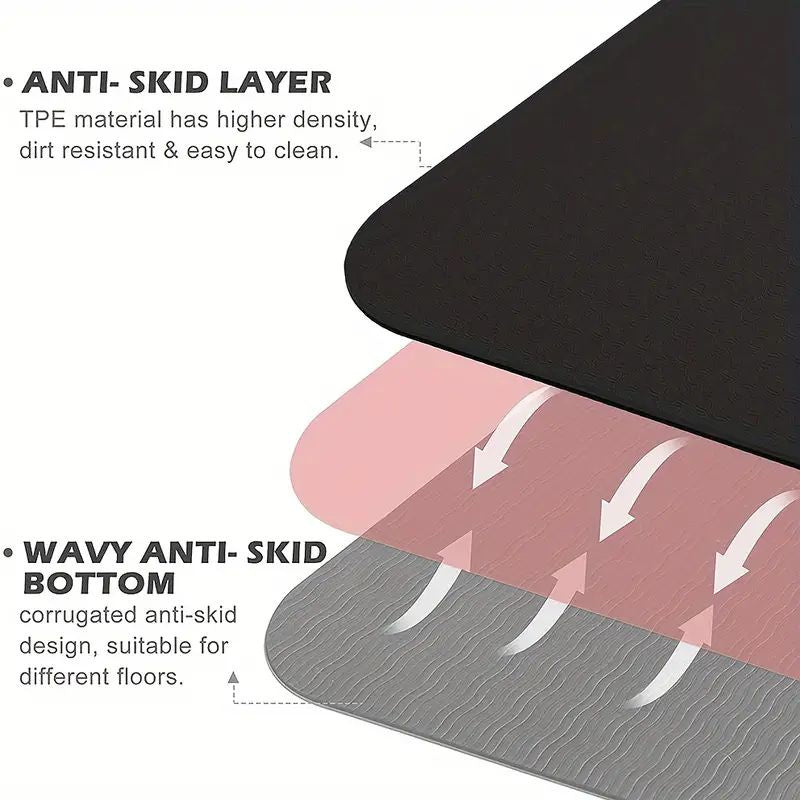 Sport TPE Yoga Mat Exercise Workout Mats Fitness Mat for Home Gym Black 6mm