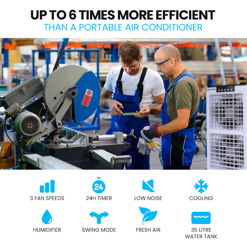 Looking for an evaporative cooler? The POLYCOOL 35L 220W Portable Evaporative Cooler is a revolutionary cooling solution that stands out in the market. Unlike traditional air conditioners, it operates without window ventilation ducting, making it incredibly versatile for various settings.