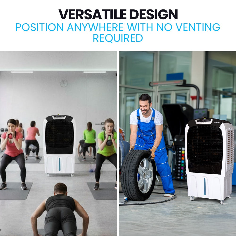Looking for an evaporative cooler or portable air conditioner? The POLYCOOL 450W 80L Evaporative Air Cooler stands out with its commercial-grade performance and innovative design. Delivering an impressive 8,000m/h airflow, it efficiently cools spaces up to 80m, making it ideal for workshops and offices.