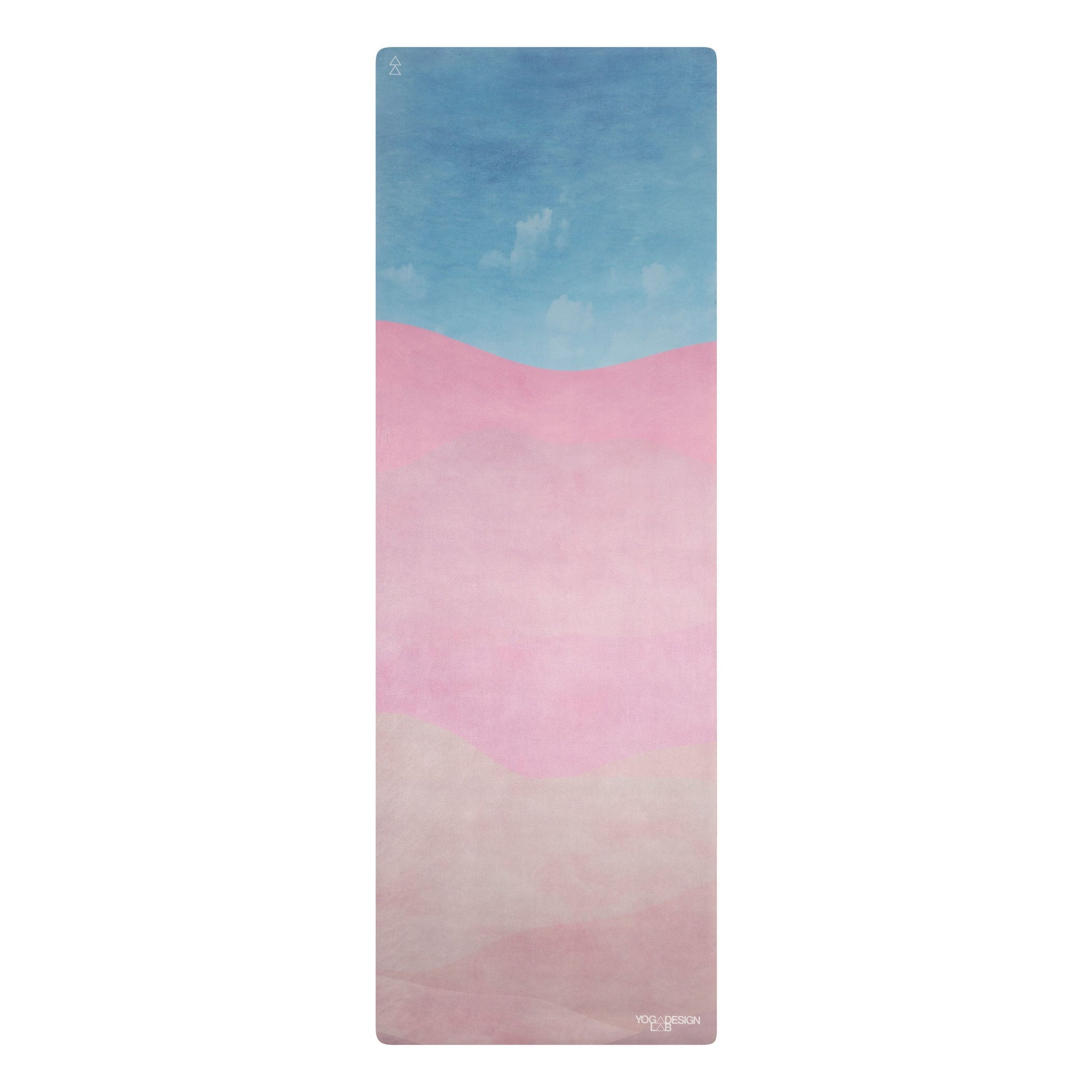 Moisture-activated surface enhances traction during hot yoga and dynamic flows.