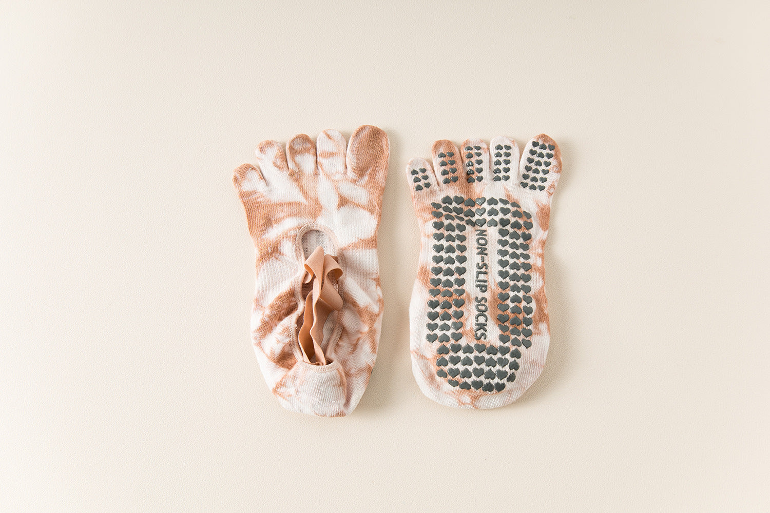 2 Pairs Pink Tie-Dye Non-Slip Yoga Socks for Women - Five-Toe Cotton Blend Socks for Pilates and Indoor Sports