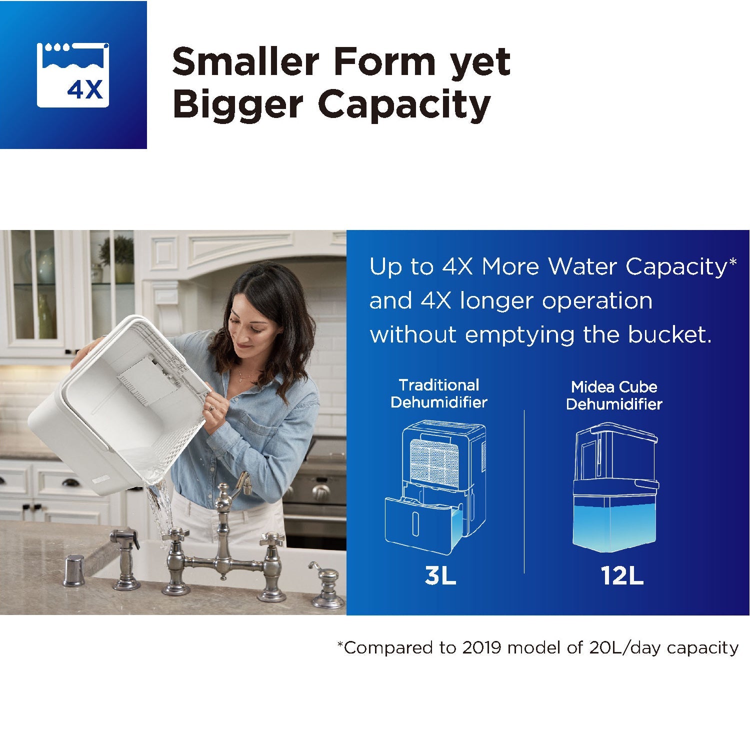 Midea Cube dehumidifier with smart wi-fi, 12L tank for up to 20L per day dehumidification MDDM20