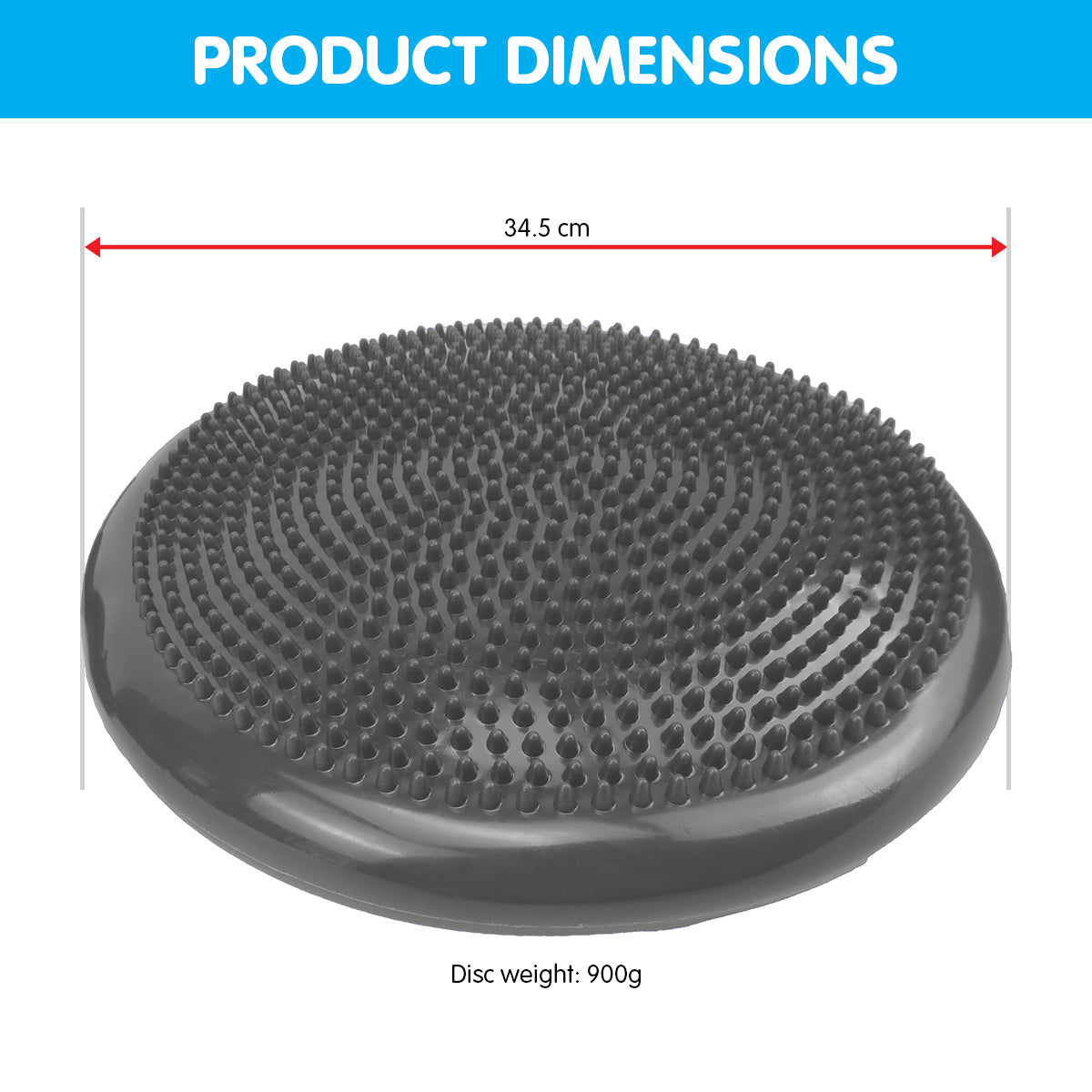 Measuring 34.5cm, the disc features a dual-textured surface—one side densely dotted for grip and the other lightly dotted for a different sensory experience. Made from explosion-proof PVC, it ensures safety while you improve your balance and proprioception. Elevate your fitness routine with this innovative tool!