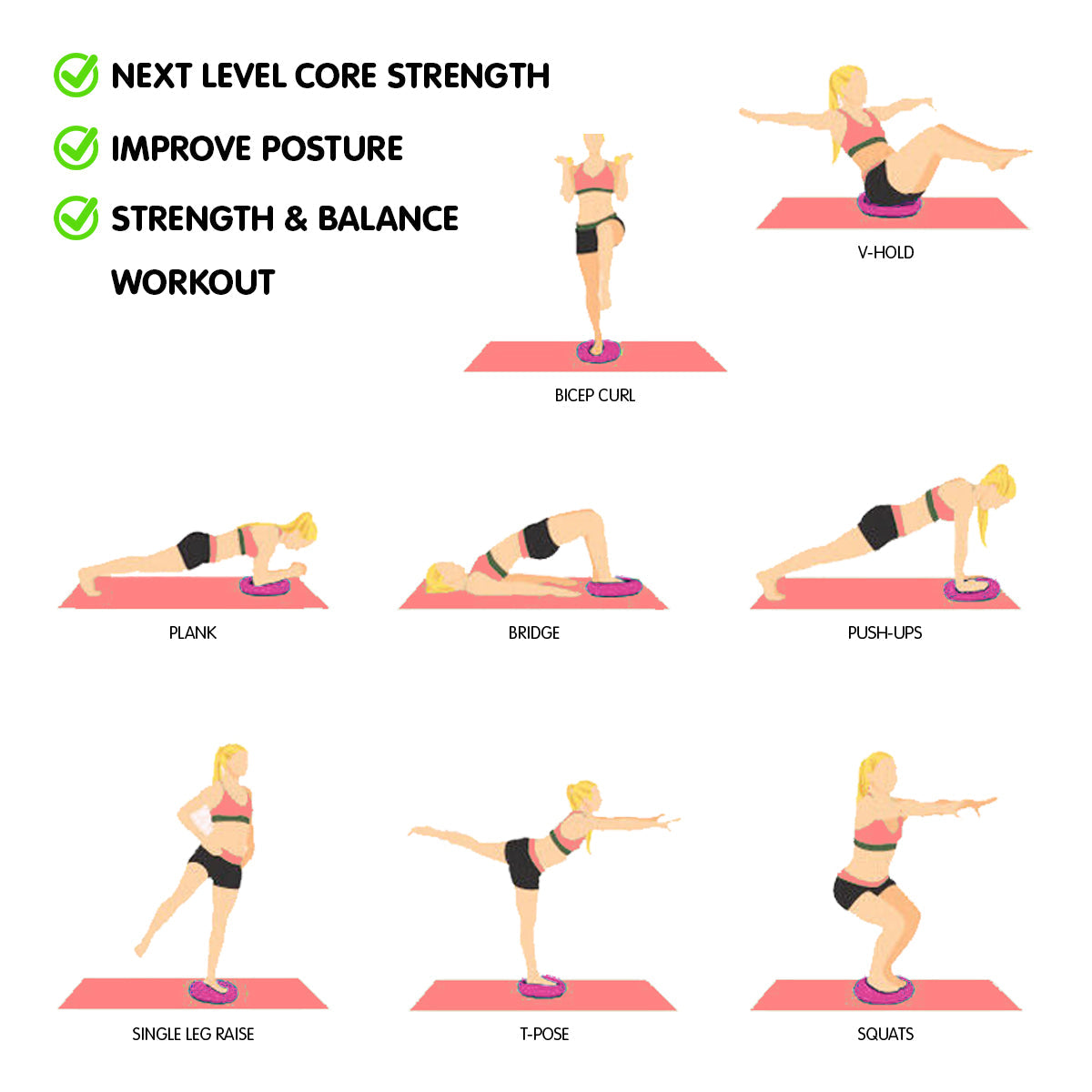 Introducing the Powertrain Yoga Stability Disc, a unique addition to your home gym that transforms ordinary workouts into extraordinary experiences. This vibrant pink balance trainer is designed to enhance your fitness routine by introducing an element of instability, challenging your core and improving posture.