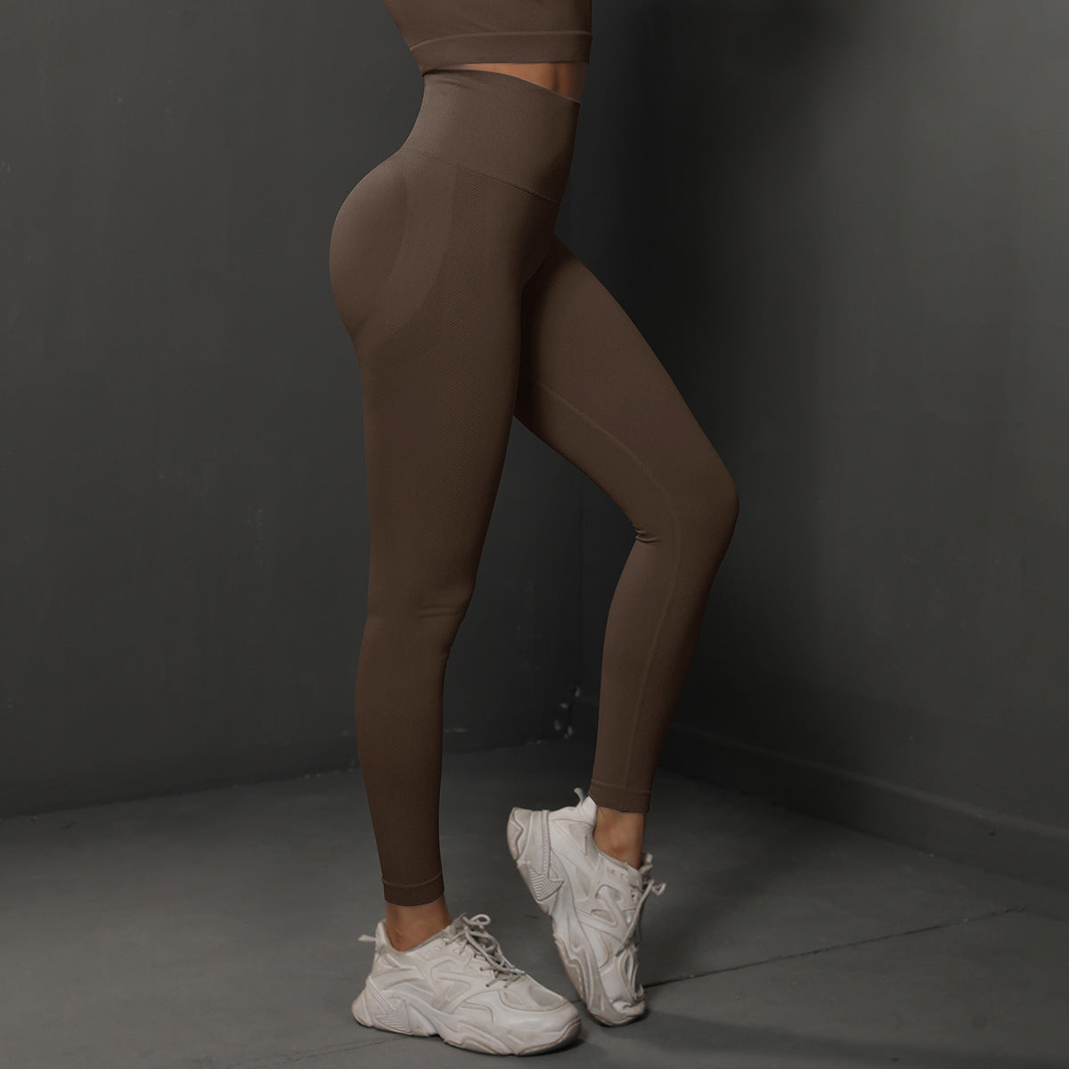 Size M Brown Seamless High-Waisted Yoga Pants for Women - Lift Workout Leggings for Running, Gym, and Fitness